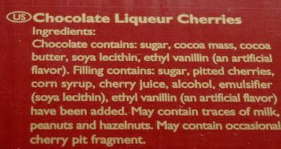 When these appear around Christmas, I'm sure to buy a few boxes to stock up. The chocolate has a nice smooth texture and a good level of sweetness. Each candy has a whole cherry inside, along with some sweet white filling and a splash of cherry-infused booze. Incredibly delicious, and a fancy treat for parties. A box of these also makes a nice gift. There's not much alcohol in these, but you may get carded when you buy them.